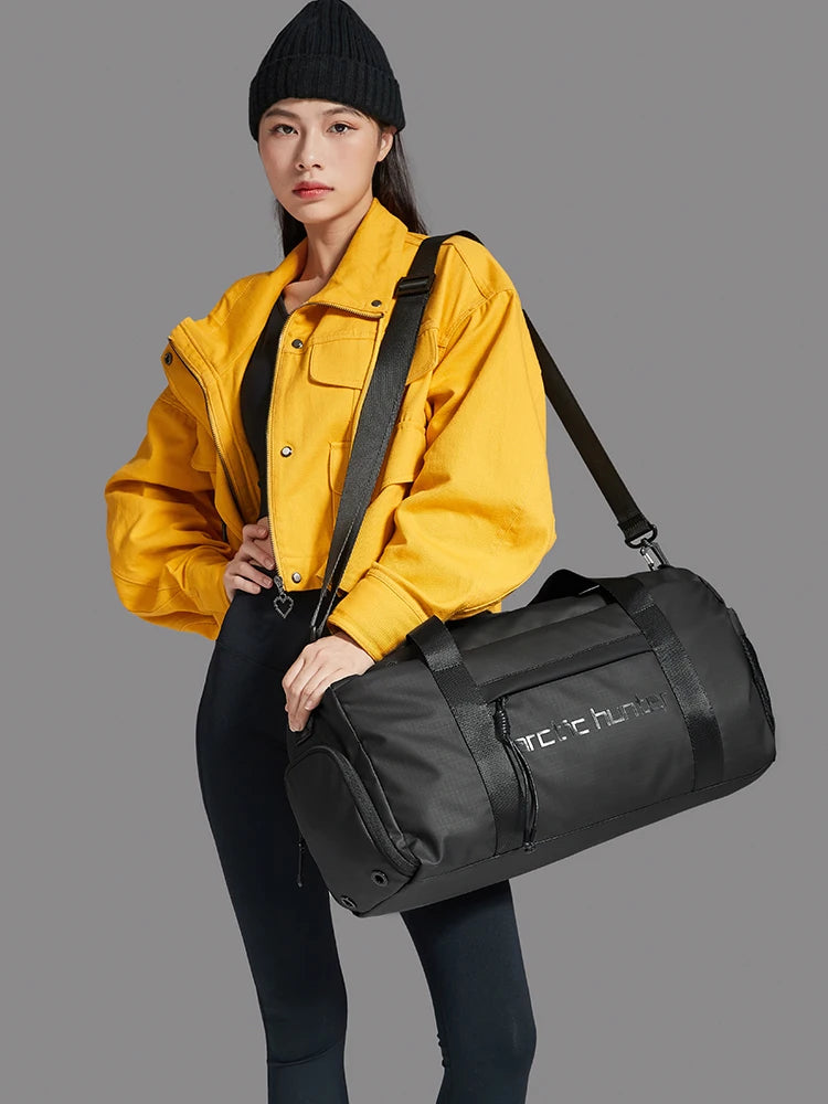 Ausgestattet mit praktischen Tragegriffen und einem verstellbaren Schultergurt, bietet die Tasche vielseitige Tragemöglichkeiten und maximalen Komfort. Ihr modernes Design und die robuste Konstruktion machen sie zu einem zuverlässigen Begleiter – egal, ob im Fitnessstudio, auf dem Sportplatz oder auf Reisen.