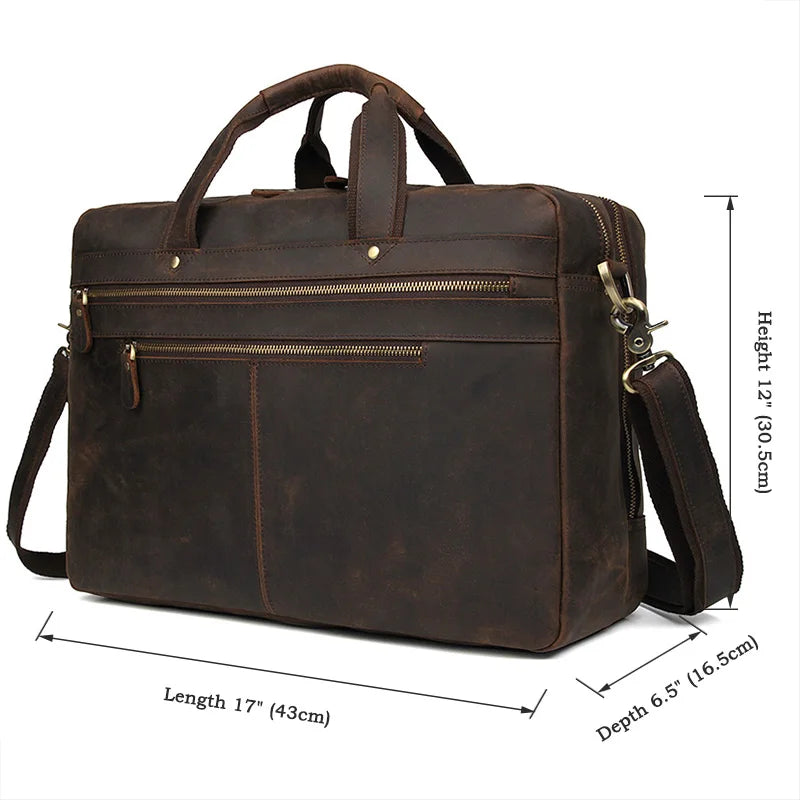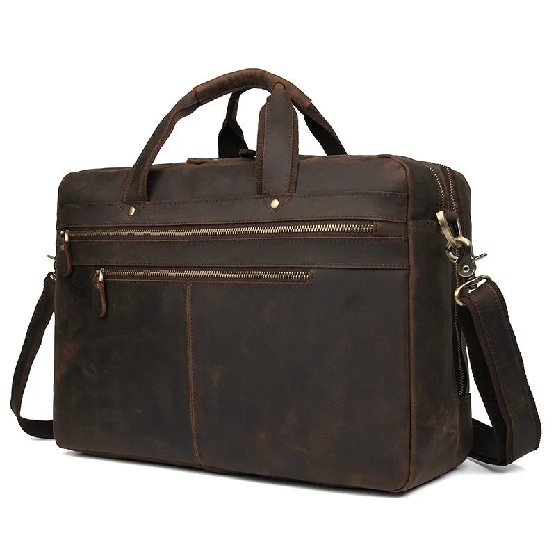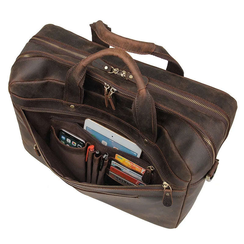 • Hochwertiges Kuhleder: Gefertigt aus strapazierfähigem, hochwertigem Kuhleder, das mit der Zeit eine ansprechende Patina entwickelt, ist diese Aktentasche langlebig und stilvoll.