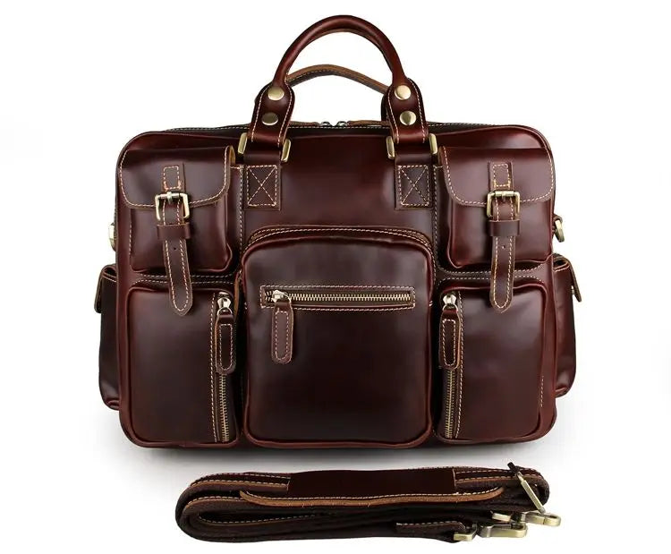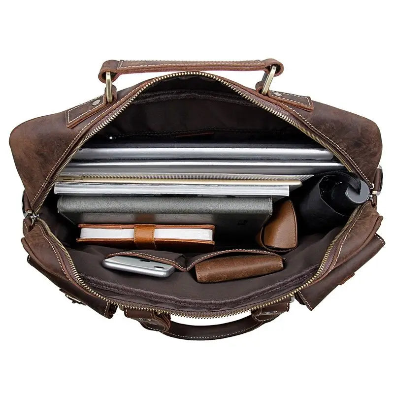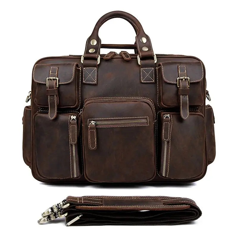 Die Aurora™ - Vintage Echtleder Anwalt Handtasche vereint klassischen Stil mit moderner Funktionalität und ist speziell für anspruchsvolle Männer entwickelt. Diese hochwertige Tasche ist ideal für Anwälte, Geschäftsleute oder jeden, der eine elegante und praktische Lösung für den Transport wichtiger Unterlagen und Geräte sucht.