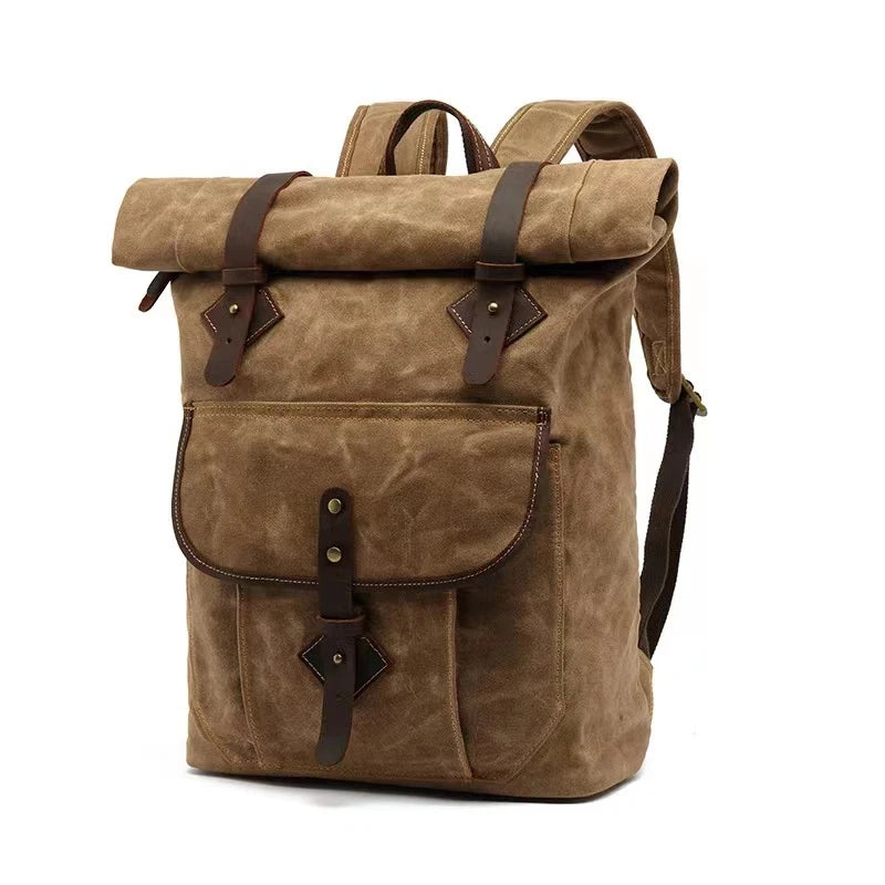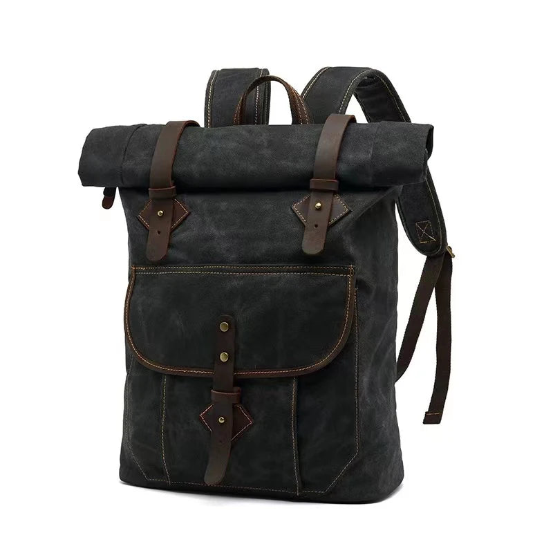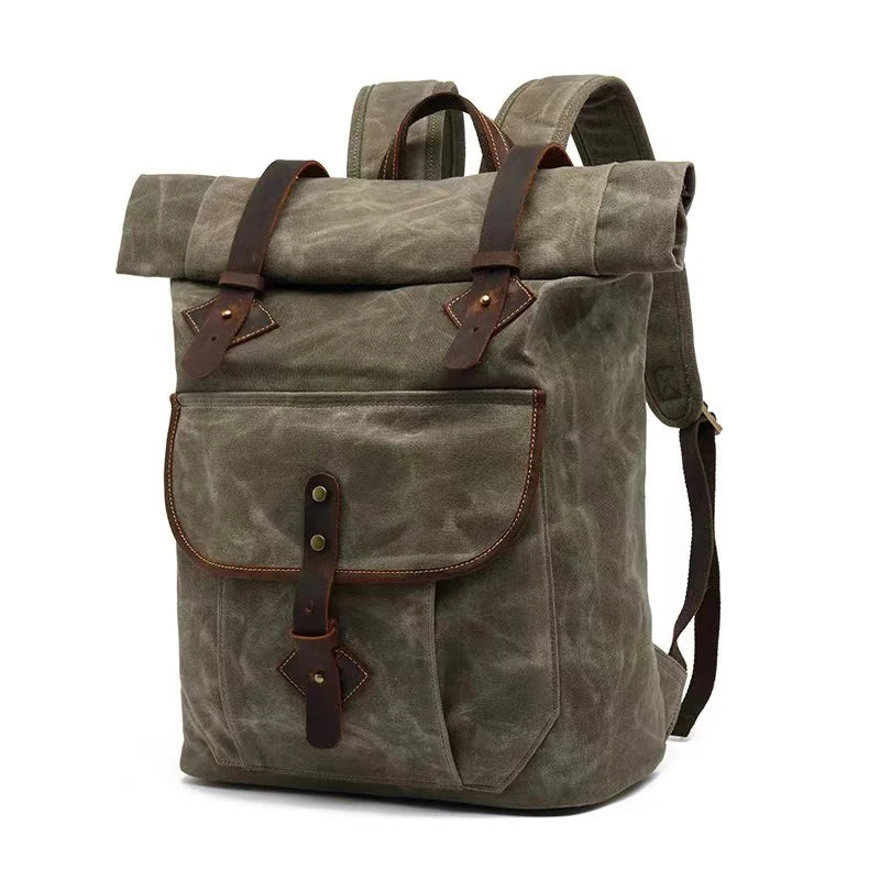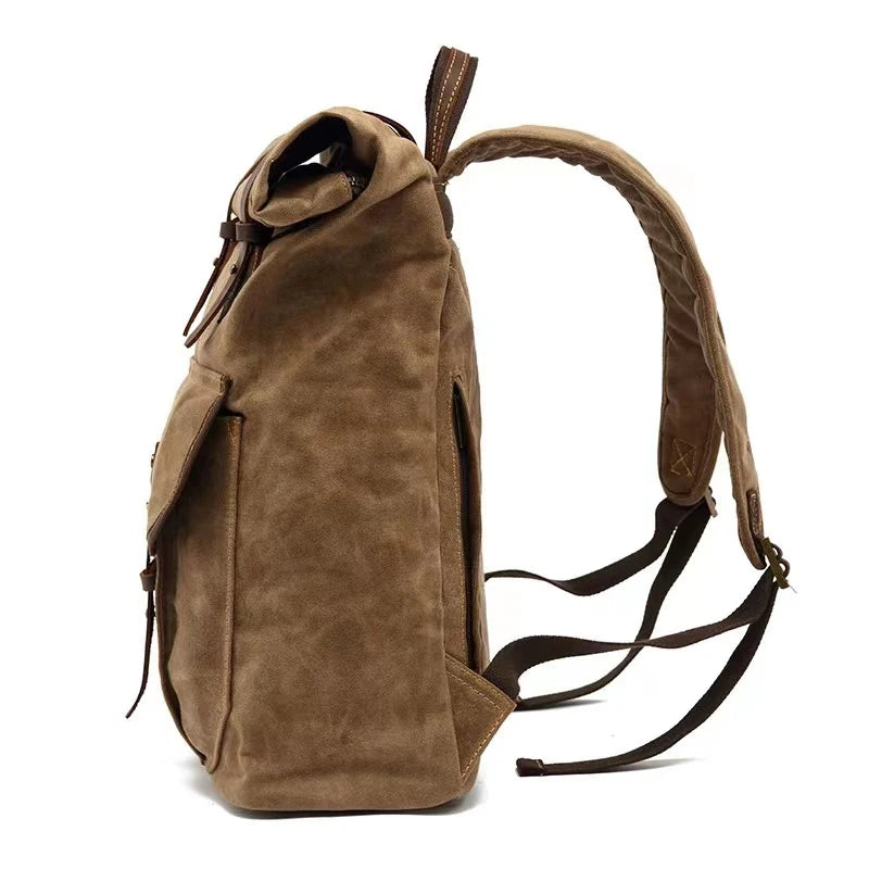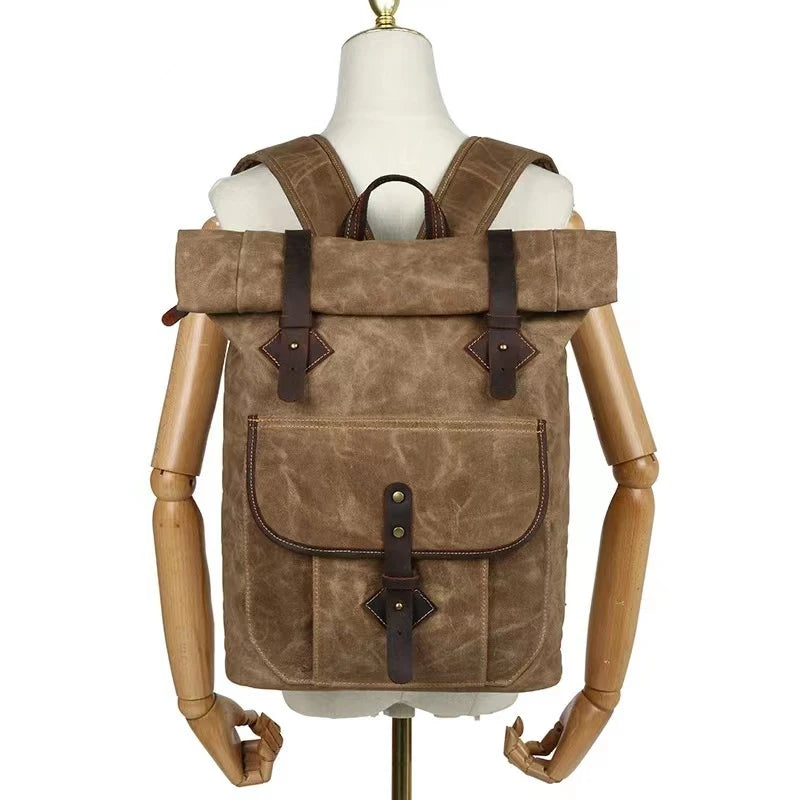 Hergestellt aus strapazierfähiger Leinwand, ist der Rucksack nicht nur langlebig, sondern auch wasserfest und schützt Ihre Gegenstände zuverlässig vor Nässe. Das Vintage-Design und die hochwertige Verarbeitung machen ihn zu einem modischen Accessoire, das jeden Look ergänzt.