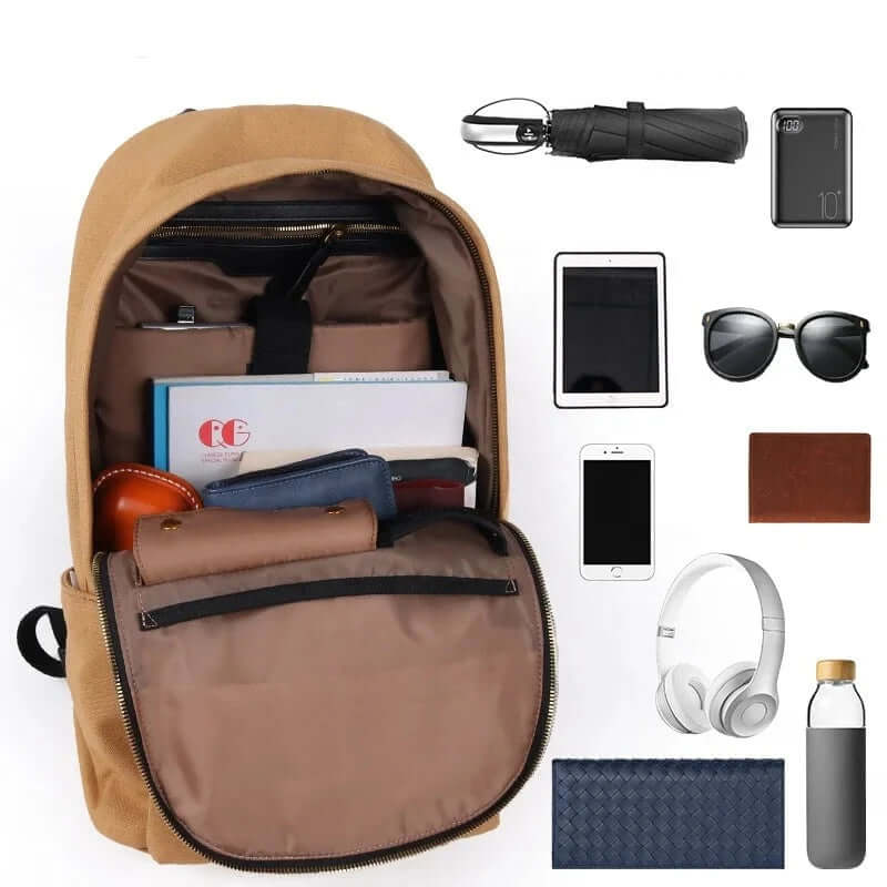 Der Aurora™ - 2025 Vintage Canvas Rucksack ist die perfekte Kombination aus zeitlosem Stil und moderner Funktionalität. Mit seinem strapazierfähigen Canvas-Material und dem durchdachten Design eignet sich dieser Rucksack ideal für den Alltag, die Arbeit oder Reisen.