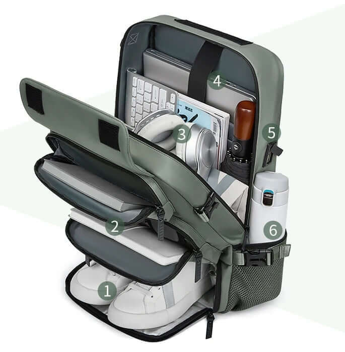 Der Aurora™ - 2025 Große Reise-Rucksack für 16-Zoll-Laptop ist die ideale Lösung für moderne Reisende und Berufspendler, die Wert auf Stil, Komfort und Funktionalität legen. Dieser Rucksack bietet großzügigen Stauraum und optimalen Schutz für einen 16-Zoll-Laptop sowie alle wichtigen Reiseutensilien.
