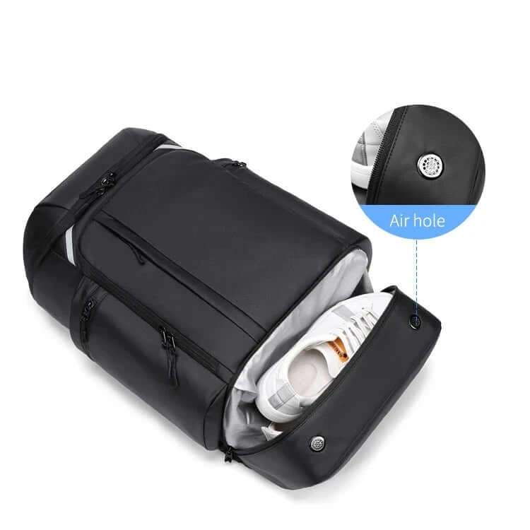 Großzügige Kapazität: Mit einem geräumigen Hauptfach und mehreren zusätzlichen Fächern bietet dieser Rucksack ausreichend Platz für Kleidung, Schuhe, Fitnessausrüstung und persönliche Gegenstände.
