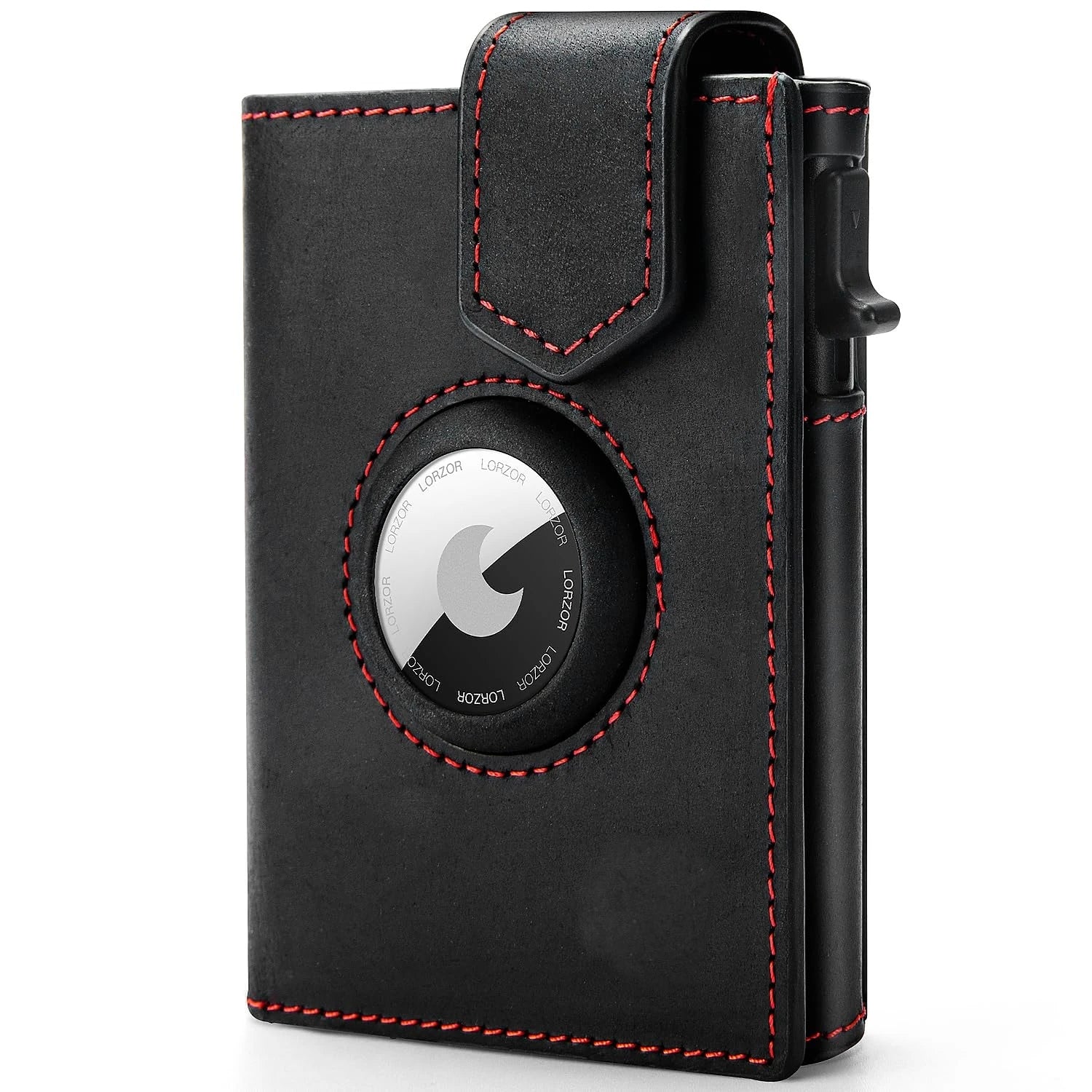 Der automatische Mechanismus ermöglicht einen schnellen Zugriff: Mit nur einem Knopfdruck werden Ihre Karten geordnet ausgegeben. Das integrierte Fach für den Apple AirTag ist ein besonderes Highlight – es sorgt dafür, dass Sie Ihren Kartenhalter immer orten können, falls er verloren gehen sollte.